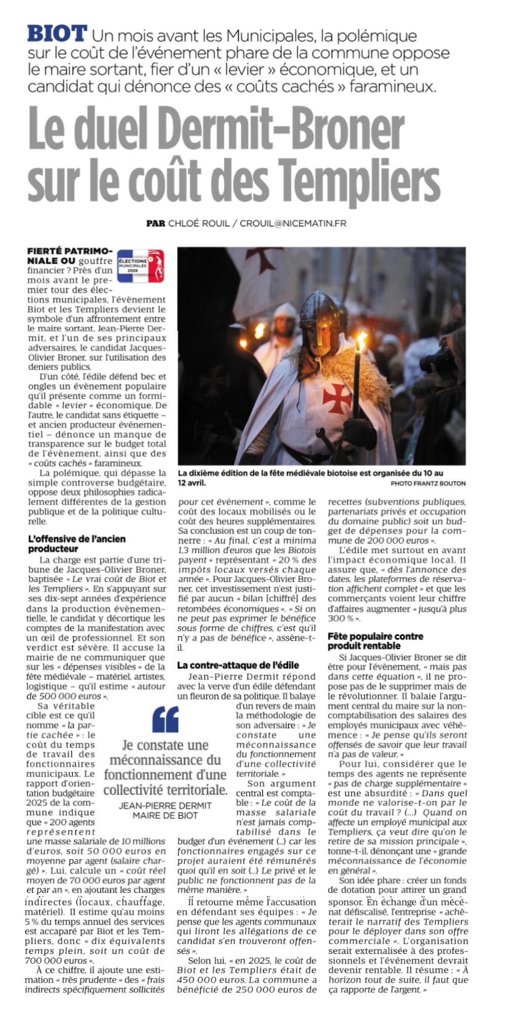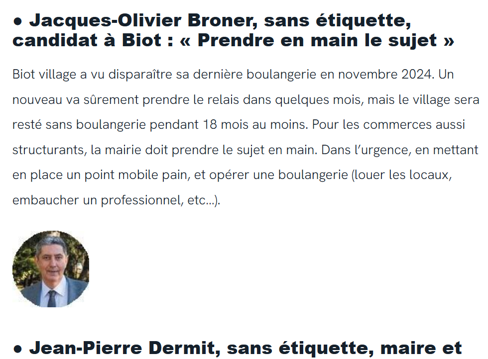 « le candidat sans étiquette – et ancien producteur événementiel – dénonce des coûts cachés faramineux (…) Au final, c’est a minima 1,3 million d’euros que les Biotois payent représentant 20% des impôts locaux versés chaque année ».